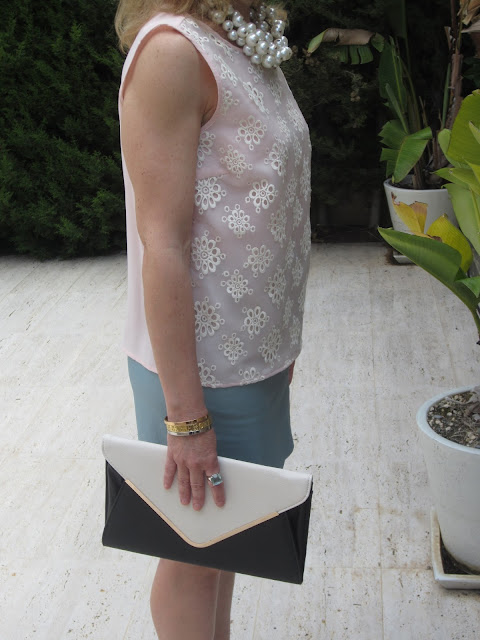 La camisa troquelada en rosa pastel, con dibujos perforados,